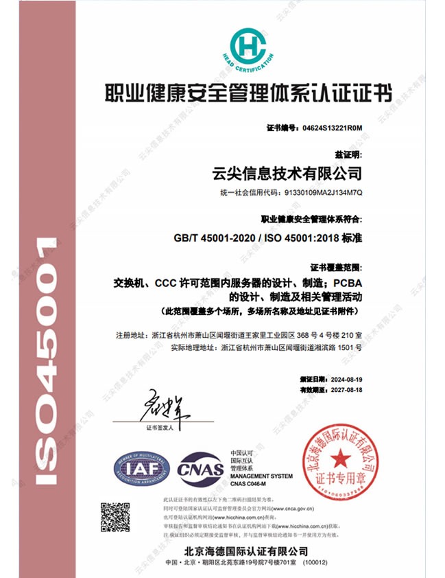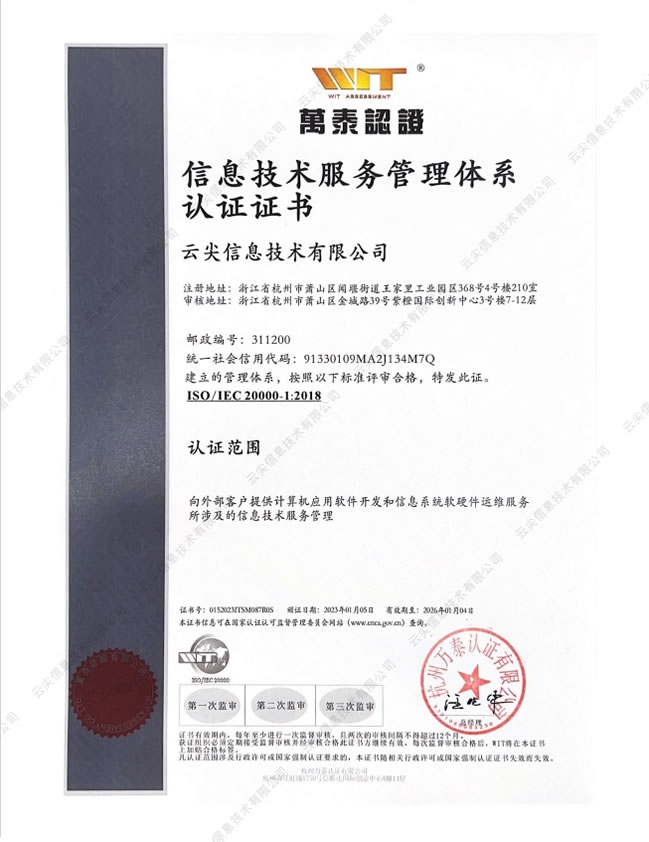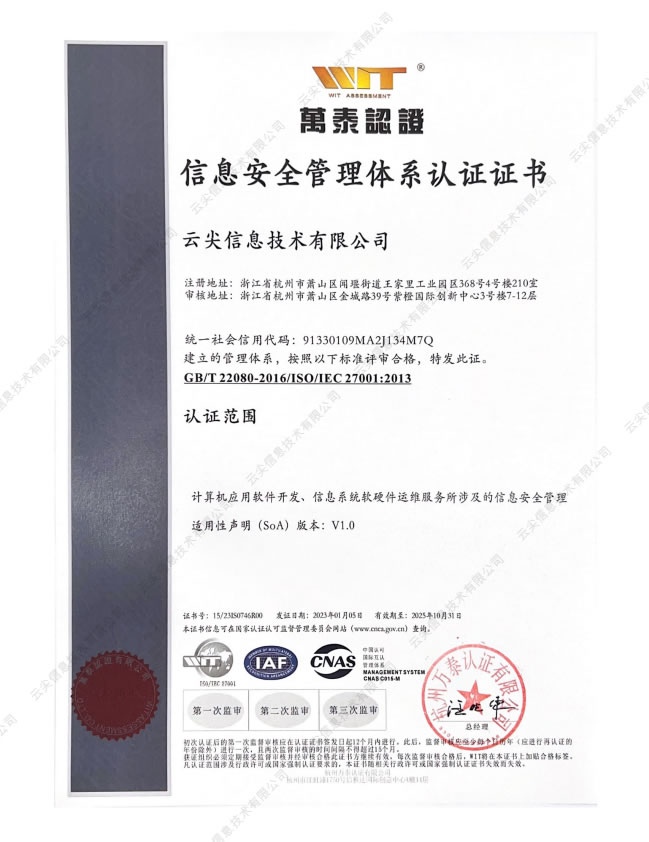 ISO27001 信息安全管理體系認(rèn)證證書