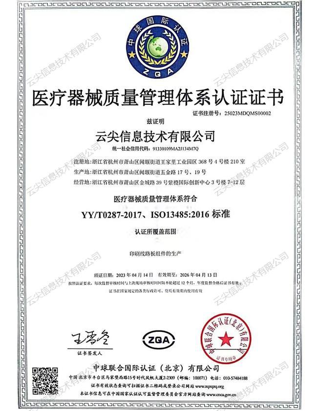 ISO13485 醫(yī)療器械質(zhì)量管理體系證書
