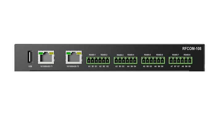 RFCOM-108 Internet of Things Communication Management machine is a multi-port, high-performance RS485 communication management terminal designed for industrial control environments. The device integrates an ARM A7 processor with a main frequency of up to 798Mhz and adopts a fanless and silent design, adapting to complex industrial environment applications. Supports interfaces such as RS485/ Ethernet; Support WEB remote configuration and control; Supports ModbusRTU and ModbusTCP software features.